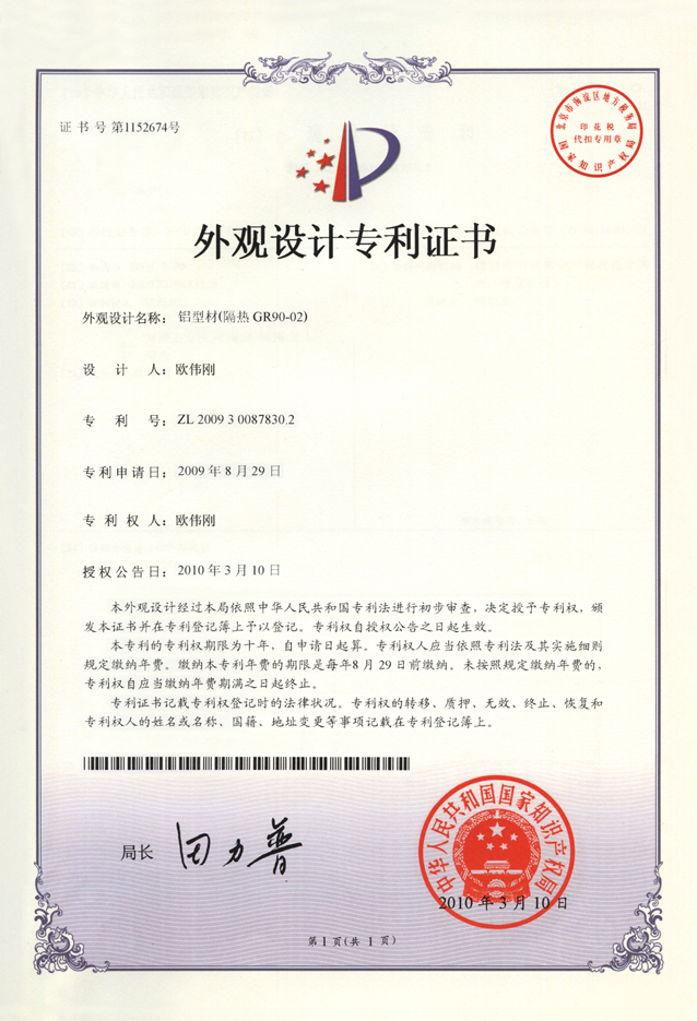 外观设计专利证书