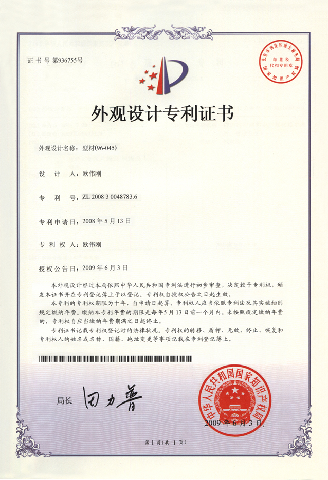 外观设计专利证书