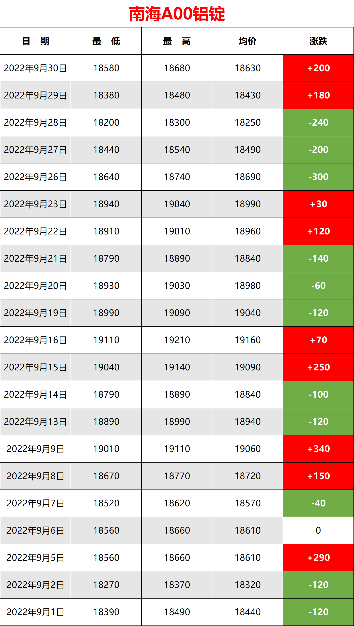 2022年9月铝价查询